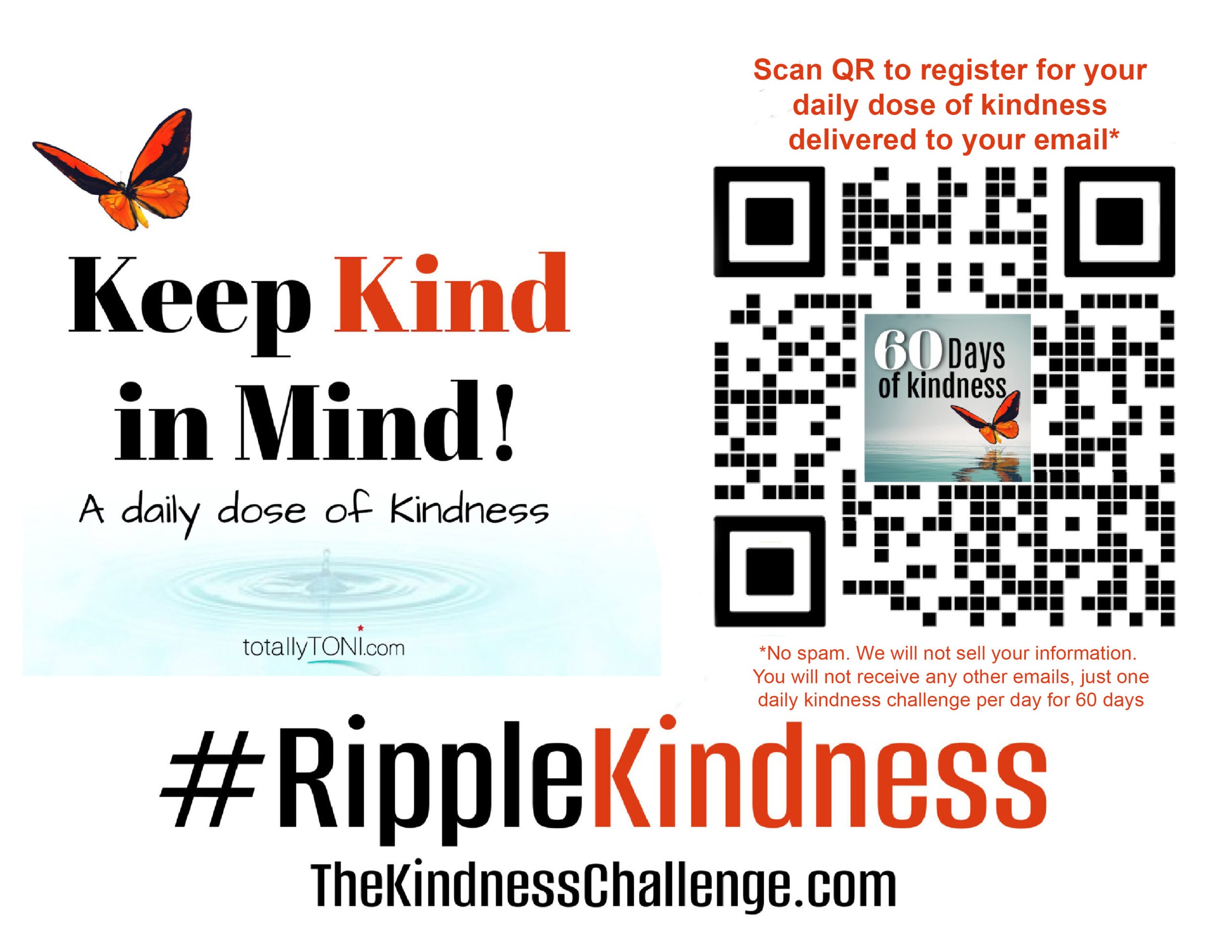 No spam. We will not sell your information. You will not receive additional emails, just one kindness email per day for 60 days.