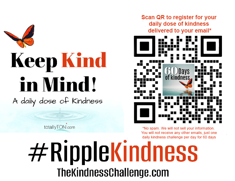 Sign-up to receive one kindness email every day for 60 days. You’ll receive a weekly kindness message from our Kindness Coach Toni Blake, plus daily videos, articles, project lists, and resources – to fortify your own spirit of kindness. Lead your own kindness campaign for your office, church, apartment community, or civic group. Post the Kindness QR where others can sign-up as well. No spam, just one email daily for 60 days.
